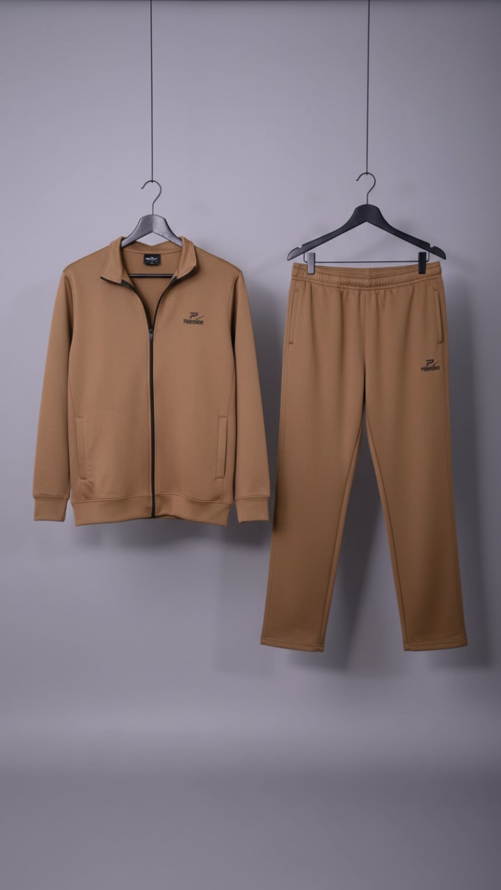 This warm brown full-sleeve track suit combines comfort with a clean, modern style. Made from soft and breathable fabric, it is perfect for workouts, casual outings, or daily wear. The earthy brown tone gives a premium and versatile look, while the full sleeves provide added warmth and coverage. Designed for a relaxed yet smart fit, this track suit is ideal for all seasons and everyday comfort.